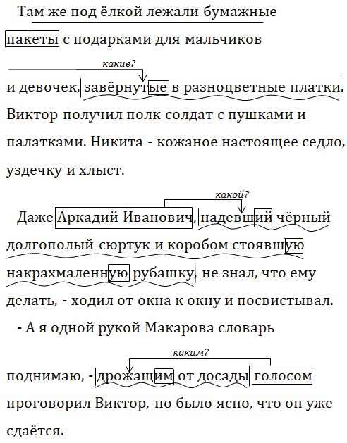 Там же под ёлкой лежали бумажные п..кеты с подарками для мальчиков и девочек, завёрнутые в разноцветные платки. Виктор получил полк солдат с пушками и палатками. Никита - кожаное настоящее седло, уздечку и хлыст.